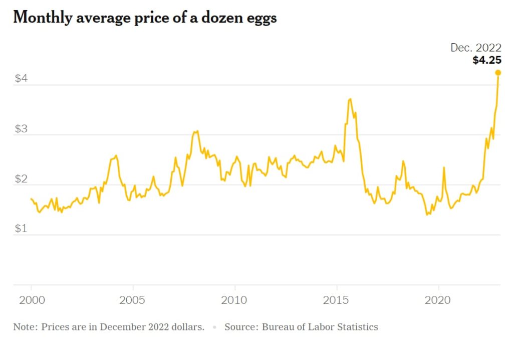 Grocers are struggling with the rising costs of eggs, as wholesale prices remain elevated. The USDA reported that outbreaks on farms have hurt the population of egg-laying hens and young birds, making it difficult to offset losses. For consumers, this means continued high prices as the avian flu persists, leaving little hope for relief in the near term.